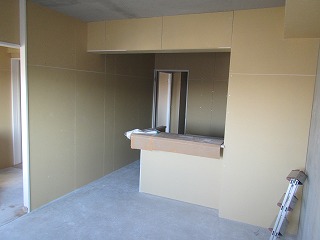 プラスターボード施工完了の様子です。